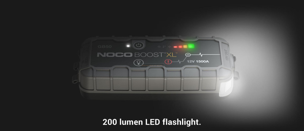A NOCO GB50 Boost XL UltraSafe egy hordozható lítium-ionos akkumulátorral ellátott indítárásegítő, amely 1 500 amperrel másodpercek alatt "életre kelti" a lemerült akkumulátort. Hordozható áramforrásként is használható USB-eszközök - például okostelefonok, táblagépek és egyéb eszközök feltöltéséhez, vagy 12 voltos eszközök - például elektromos pumpa, áramátalakító és sok más eszköz táplálásához. Személygépkocsihoz, csónakhoz, lakóautóhoz, teherautóhoz és más, 7.0 literes benzinmotorokhoz és 4.5 literes dízelmotorokhoz egyaránt használható.