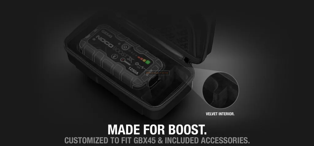 - A GBX45 UltraSafe lítiumos Jump Starterhez és a mellékelt tartozékokhoz igazítva.