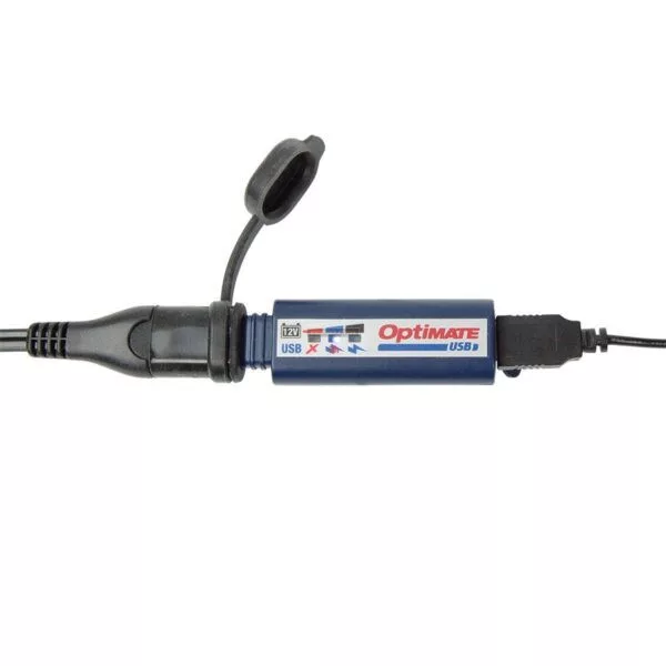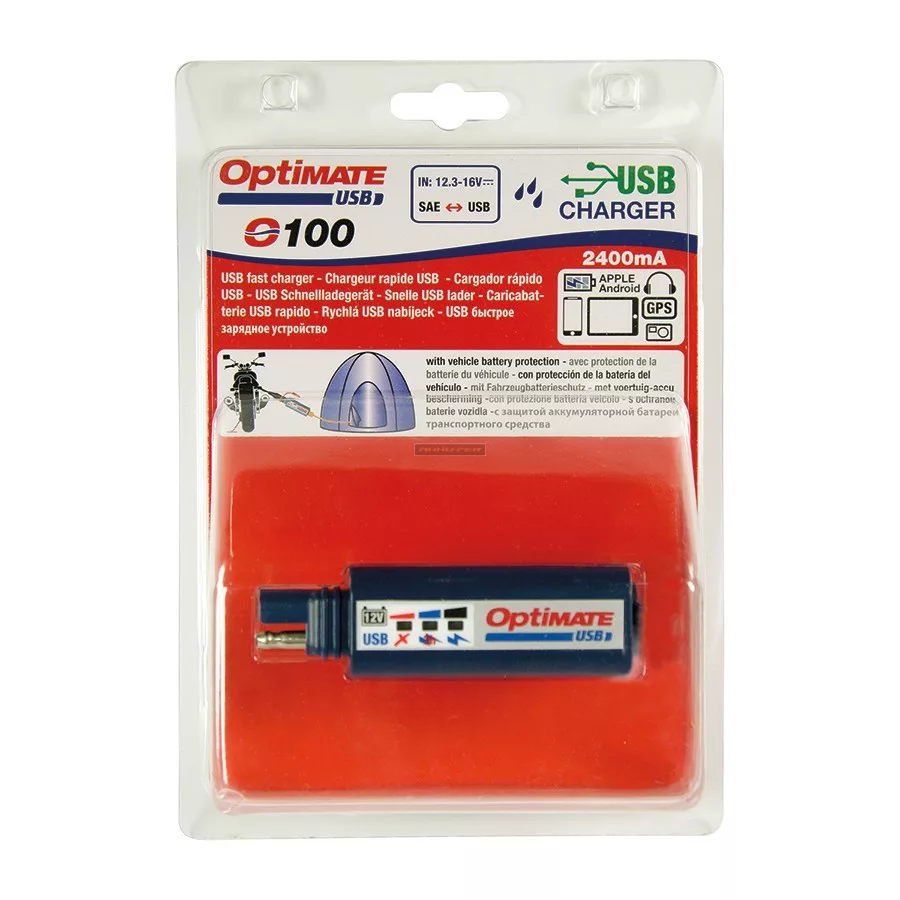 O-100 - Átalakító SAE-ról USB-re, 2400 mA-es USB-s töltő és 3 LED-es akkumulátor-monitor, lemerölés elleni védelemmel.