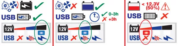 Figyeli és kijelzi a parkoló jármű akkumulátorának állapotát – jelzi, hogy az akkumulátor „indításra készen áll” (LED villogása)!