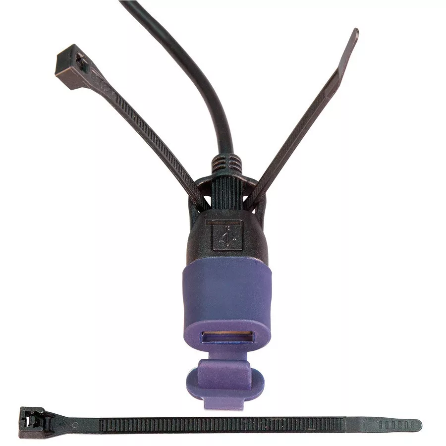Időjárásálló USB töltőport könnyen, cipzárral rögzíthető a kormányhoz, a rugóstaghoz vagy akár a fék-/kuplung vezetékhez – Tömíti a behelyezett USB-vezetéket a töltéshez bármilyen időjárás esetén!