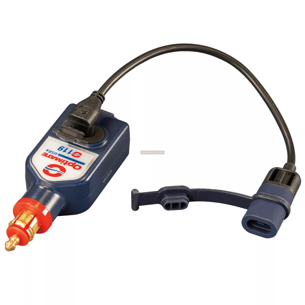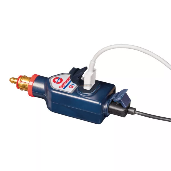 O-119 - Hordozható 3300mA-es kettős USB töltő USB-A és USB-C porttal, 180°-os BIKE csatlakozóval a Triumph, Ducati Multistrada vagy BMW motorkerékpárhoz - A legjobb választás a Triumph 800 és a legújabb Ducati MultiStrada számára.