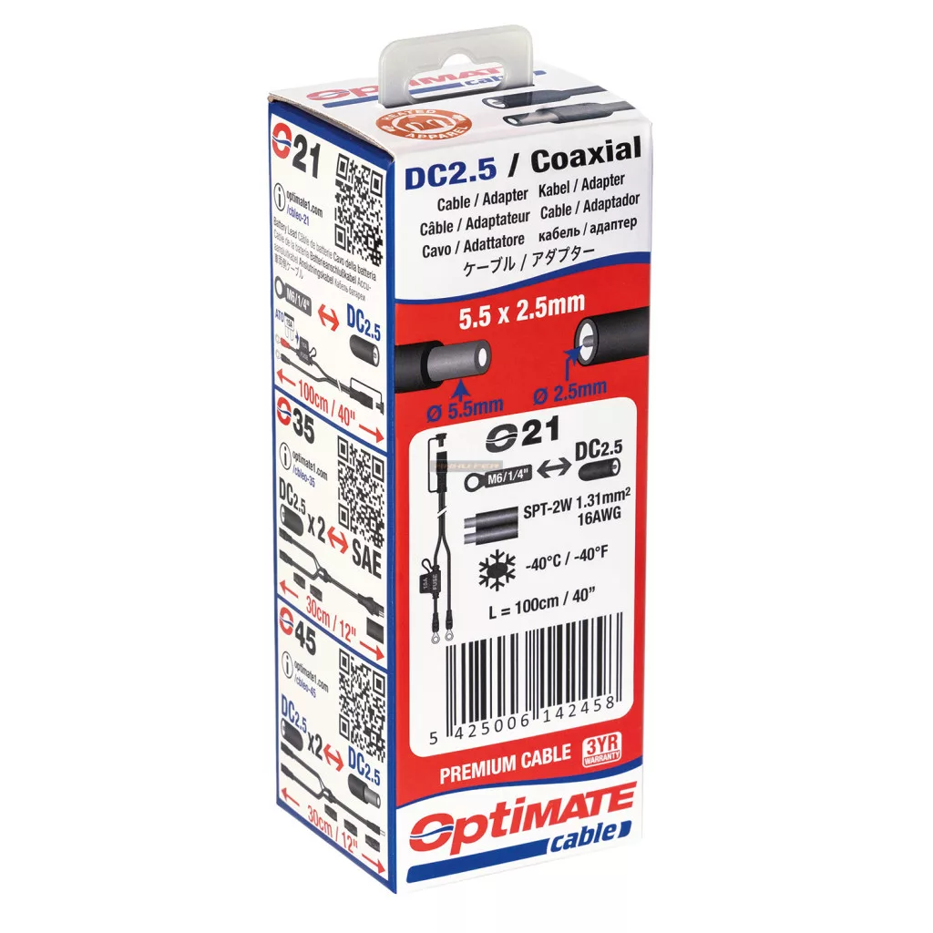 Az Axial DC 2,5×5,5 mm-es csatlakozó minden népszerű márkához illeszkedik, az M6-s szemes csatlakozók minden powersport akkumulátorhoz illeszkednek.