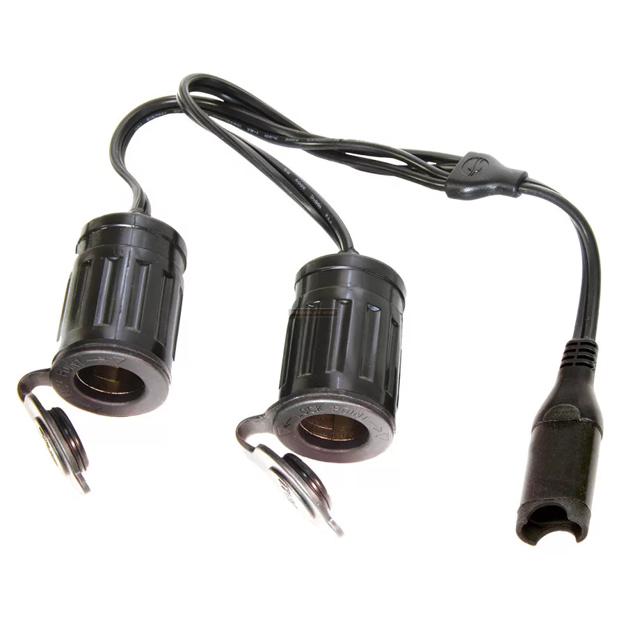 O-19 - Átalakító SAE-ról 2x AUTO aljzatra, Y-elosztó. Illessze a 12V-os SAE tápkábelét 2 normál AUTO aljzathoz.