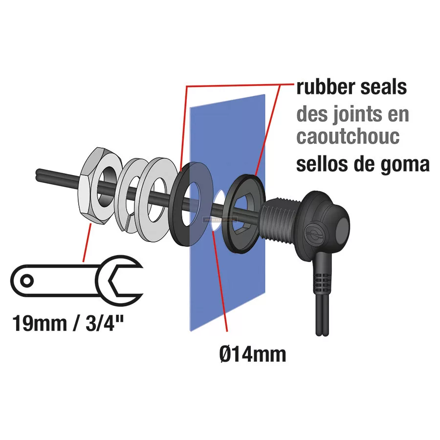 A csatlakozó illeszkedik a legtöbb tankzsákon található Ø14mm-es lyukhoz - Egyedi tömítés a KÖRÖS és OVÁLIS áramellátási bejáratokhoz.