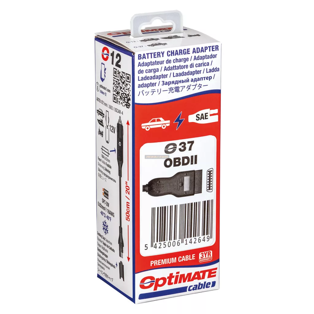 O-37 - Átalakítja a személygépkocsi vagy pick-up teherautó OBDII portját, amely az utastérben található, OptiMate SAE akkumulátortöltő csatlakozóra.