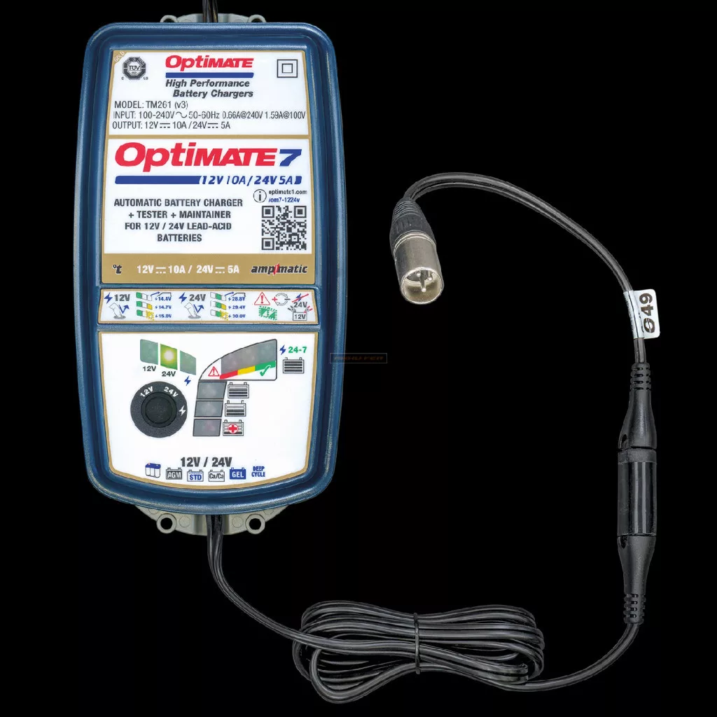Ezekkel az OptiMate 24V-os akkumulátortöltőkkel működik.