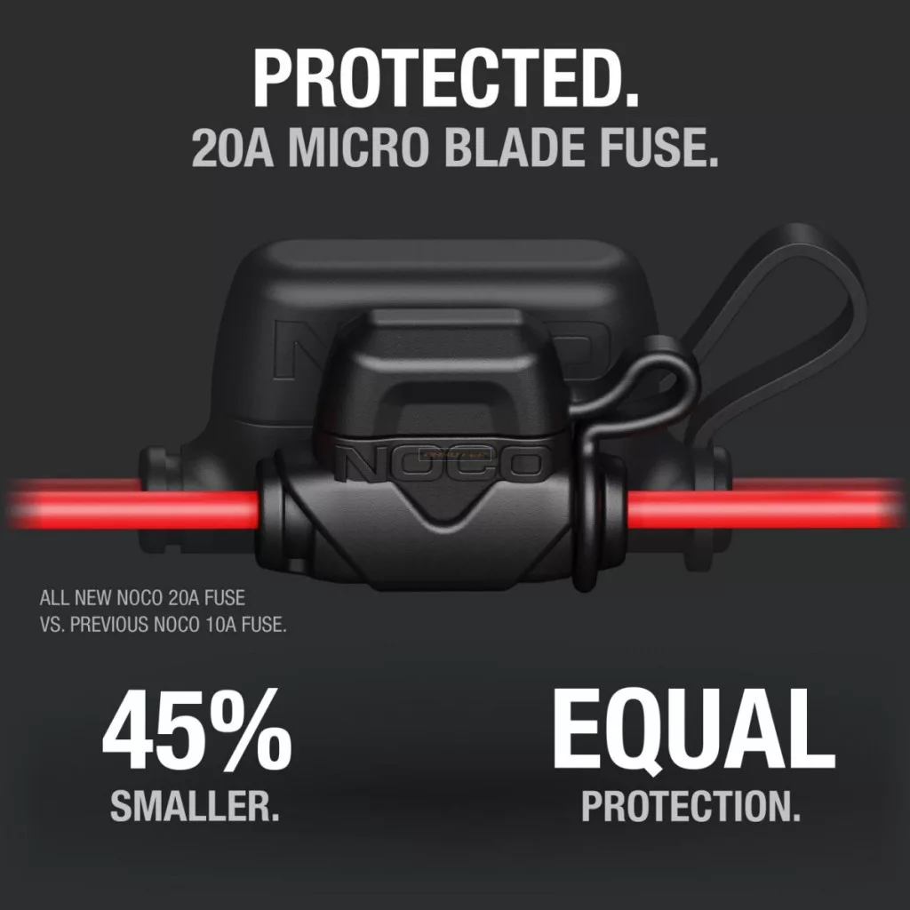 A Noco GC018 12V-os dugó szemes csatlakozókkal közvetlenül az akkumulátorhoz csatlakozik. Könnyedén táplálhatja kedvenc 12V-s eszközeit közvetlenül az akkumulátorról, például pumpát, porszívót, kávéfőzőt, ventilátort, hűtőt és még sok mást. Biztosított csatlakozókkal rendelkezik a nagyobb biztonság érdekében, és vízálló kupakkal, amely megvédi a 12V-s aljzatot az időjárás viszontagságaitól. Nagy vezetőképességű, 16AWG 100 százalékos rézhuzalból készült, névleges kapacitása 15 amper.