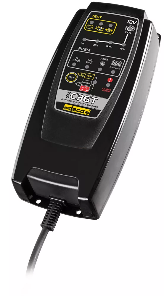 Deca SM C70T - Hordozható töltő 12V-s ólom-savas (zártrendszerű, gondozásmentes, klasszikus ólom-savas, zselés, VRLA) akkumulátorok töltéséhez. Töltőáram értéke 7A közötti. Akkumulátor kapacitása 14-150Ah közötti. A töltő használatával meghosszabbíthatja akkumulátora élettartamát.