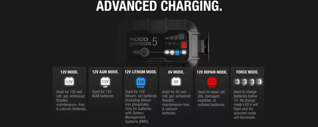 A Noco GENIUS5 az egyik legerősebb, legnagyobb teljesítményű, energiatakarékos és kompakt töltőnk. A GENIUS5 egy 6/12V-s akkumulátortöltő, akkumulátorkarbantartó és akkumulátor-szulfátlanító, amely 5 amperes teljesítményű töltőáramával alkalmas ólom-savas autóipari, tengeri és mélyciklusú akkumulátorokhoz, beleértve a klasszikus savas, zselés, AGM és karbantartásmentes, valamint a lítium-ion akkumulátorokat.